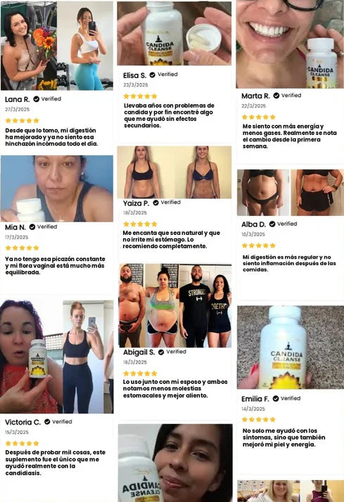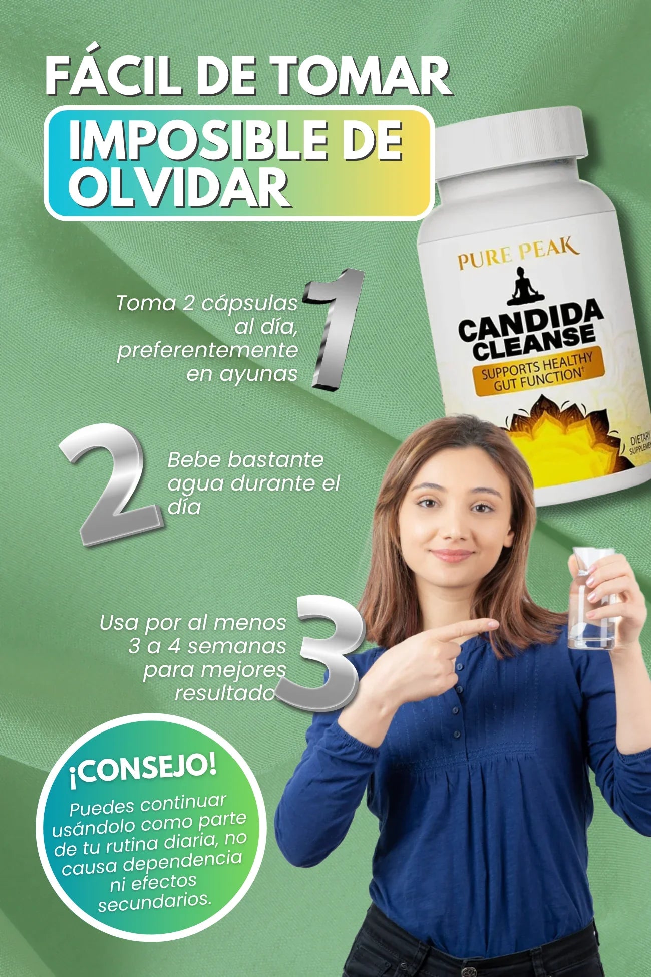 Clear Candida™ está formulado con ingredientes 100% naturales, por lo que es bien tolerado por la mayoría de personas. Si es tu primera vez desintoxicando cándida, podrías sentir un leve cansancio o más idas al baño los primeros días — es señal de que el cuerpo está eliminando toxinas.